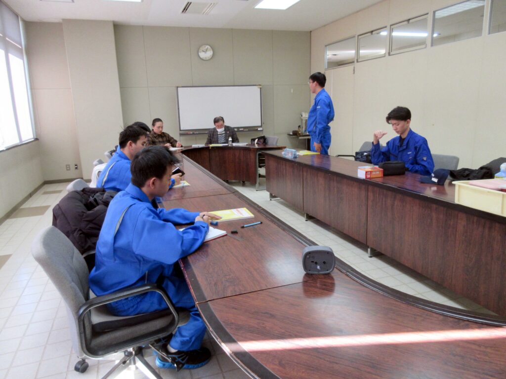 南海熱学工業様では毎週1回仕事が終わった後、30分から1時間実習生の生活指導員の方が主になって、日本語の勉強会を実施しています。実習生も指導する方も大変ですが、日本語がじょうずになるにつれて生活も仕事も楽になっていきます。 阿波ネット協同組合